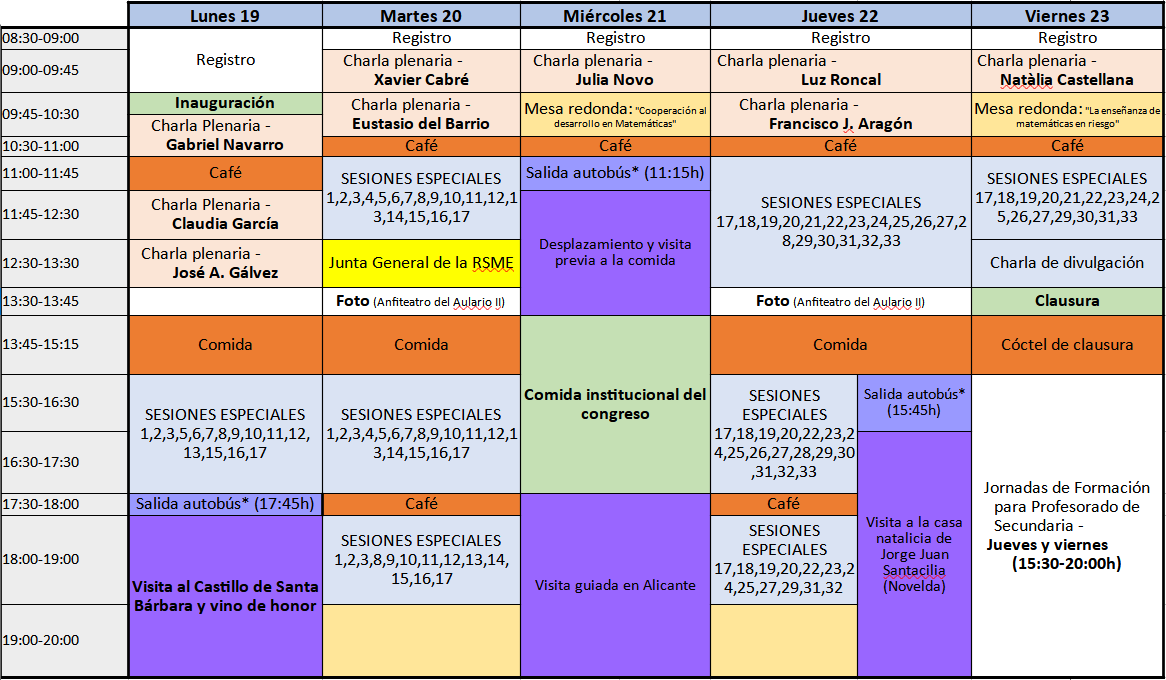 Todas las sesiones especiales, charlas contribuidas y pósteres tendrán lugar en el Aulario II del Campus de la Universidad de Alicante